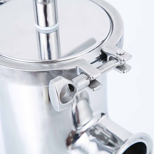 Sanitary Filter is mainly appled to protect pumps,instruments,and other device to work regularly.It features compact structure,strong filtering ability,less pressure loss,conveninent maintenance,and is widely used in beverage,pharmacy,dairy and other fields. The angle type filter housing consists of inlet and outlet housing, inner cereen mesh to filter the particulates and impurities which can't pass the mesh.